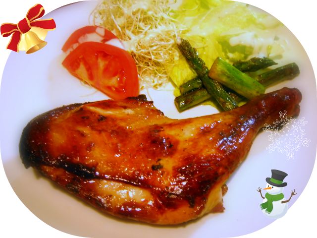 定番となってるトリモモ骨付き足の照り焼き。