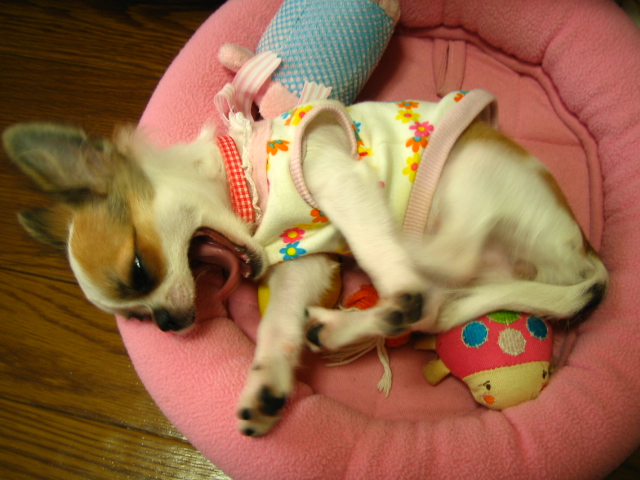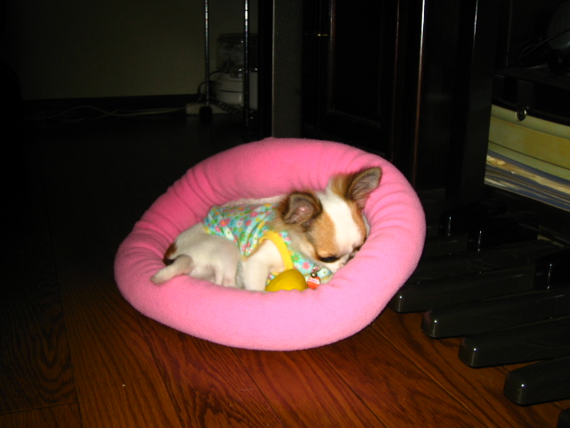 自分でもっていっちゃったベッドで、寝てました。