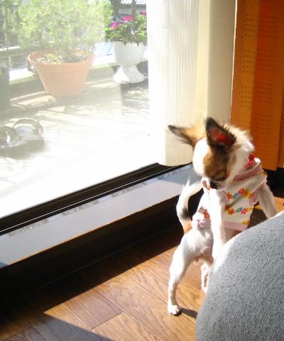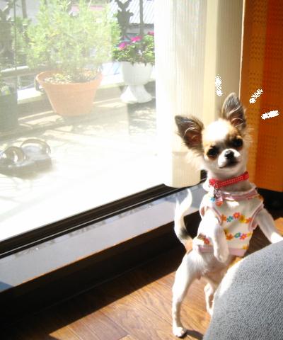 久々にベランダへの大きな窓の下で