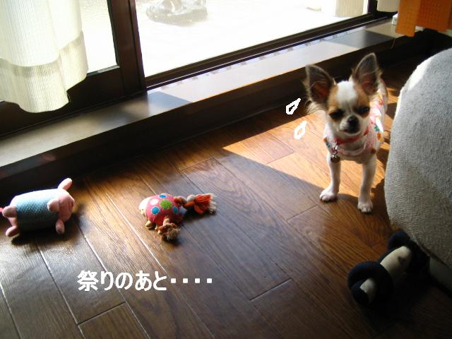 腰の紐をひっぱりだして、遊んでました。