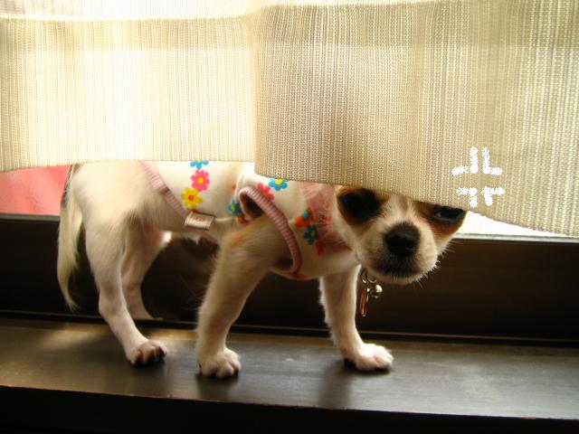 引越しして、寸足らずとなっとるレースのカーテン下に