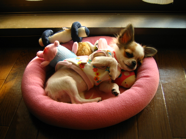お疲れモードのえみりぃと、帰宅後はまったり寝転んでたの。