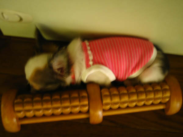 ゆうべは、後ろ頭をへりの角に乗せて