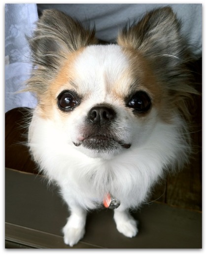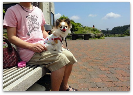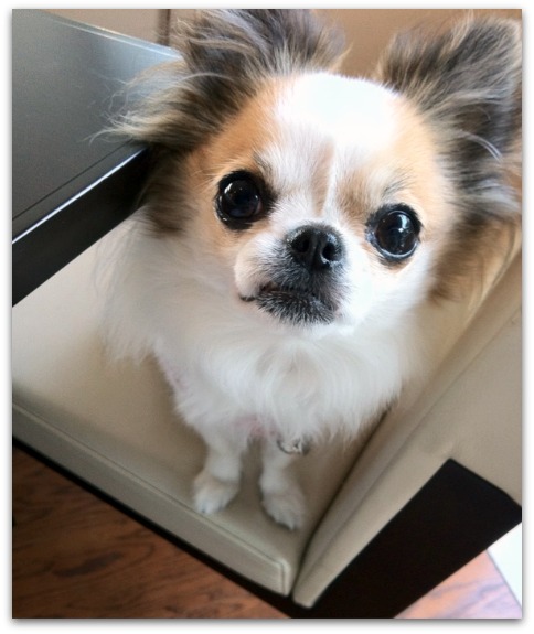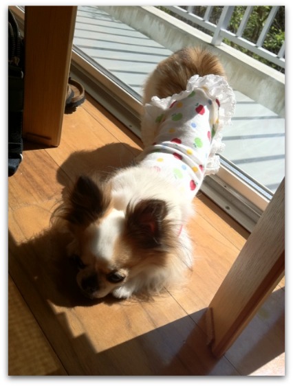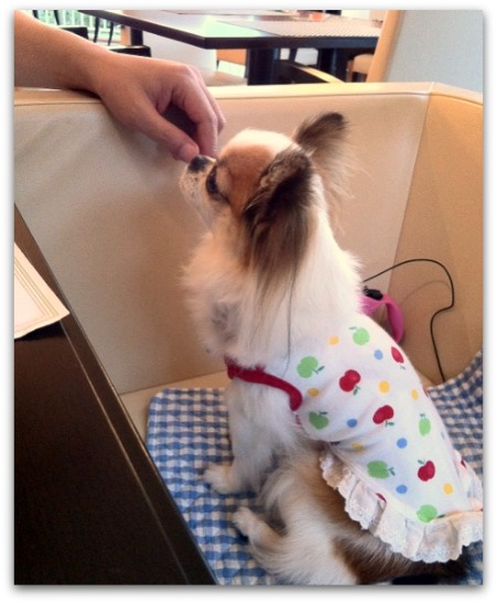 さっさとまた、おやつ係の夫の膝の上を狙って、